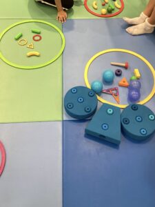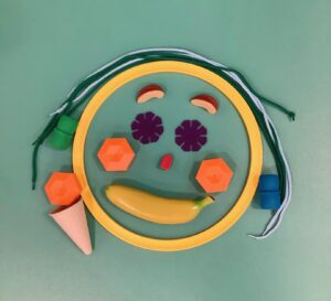 みんなが持ってきた遊具だけで、3つの表情のお顔を
