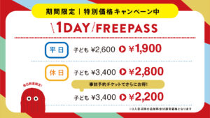 ただいま、全国のキドキドやプレイヴィルで1DAY FREEパスを特別価格でご利用いただける、
