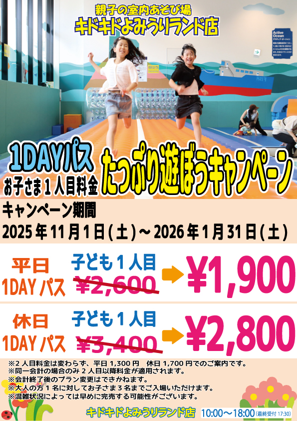 この期間中は、1DAYパスを買ってキドキドでい~っぱい遊ぼう♪